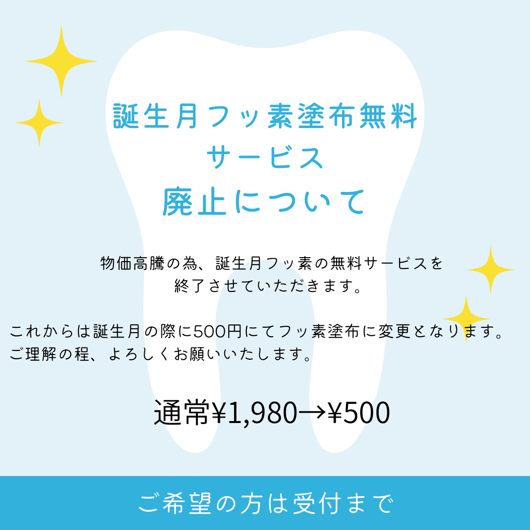 誕生月フッ素塗布無料サービス廃止のお知らせ。